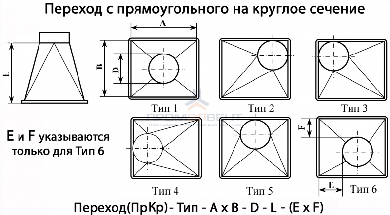 Переходы с прямоугольного сечения на круглое сечение для систем дымоудаления предназначены для перехода системы с прямоугольного сечения воздуховода на круглое сечение. Переходы с прямоугольного сечения на круглое сечение позволяют компоновать в одной системе разные сечения.